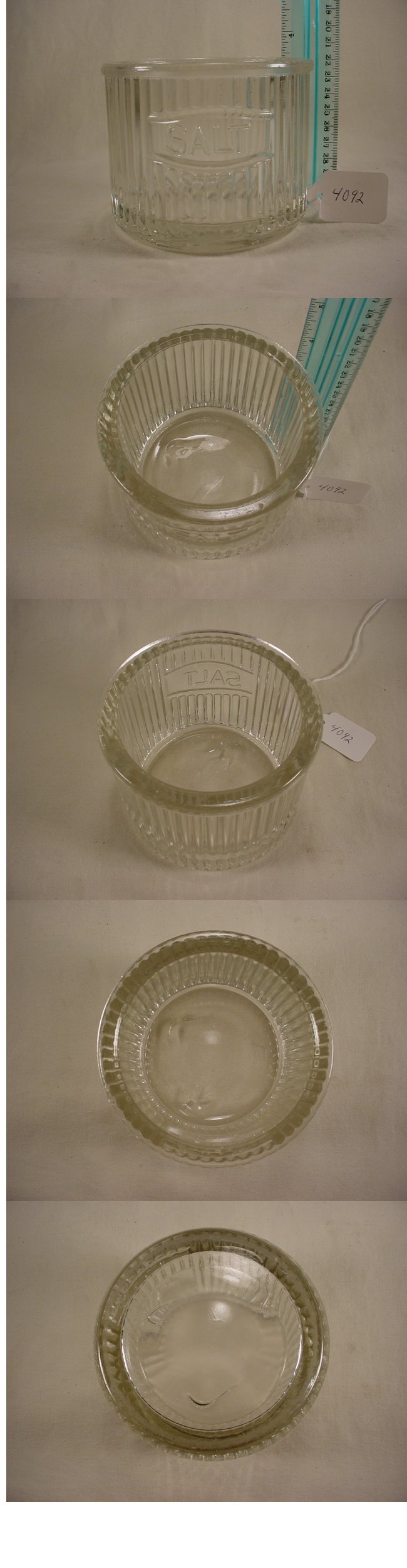 Early Round Mission Salt This salt does have some areas in the base where the glass didn't flow properly when it was made but it is in very good condition with no chips or cracks. Item No. 4092 |