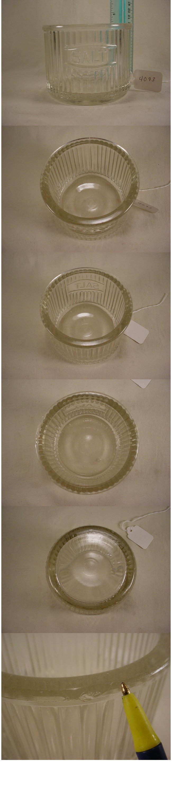 Early Round Mission Salt This salt is in good condition other than a small chipped area on the right hand side which is shown when you click on the picture. Item No. 4093 |