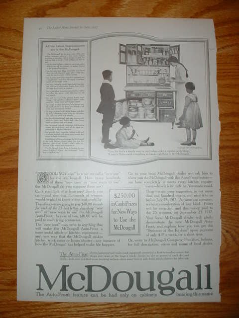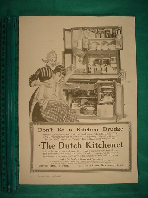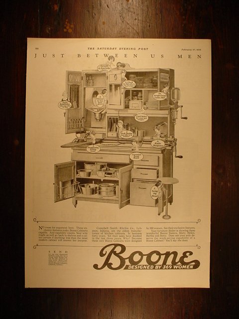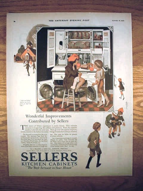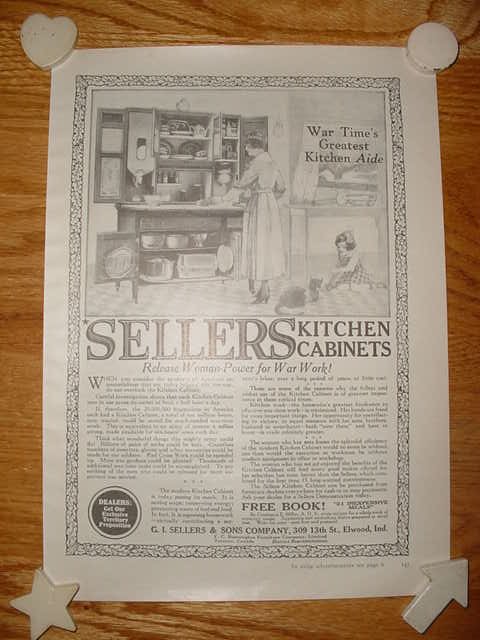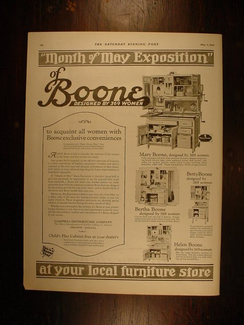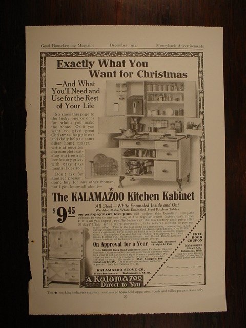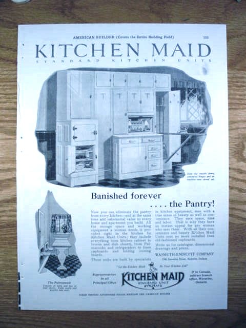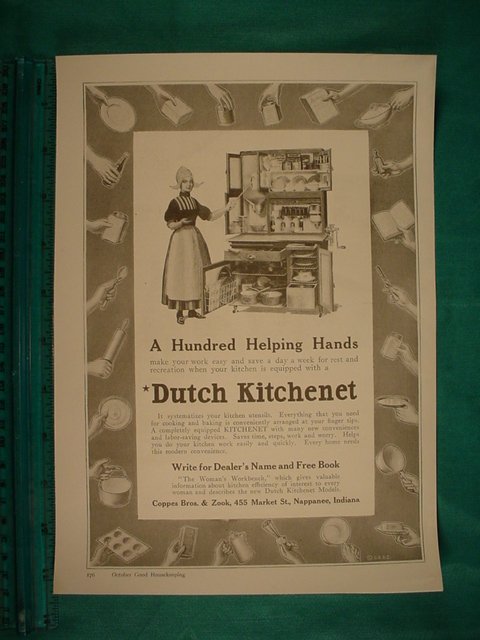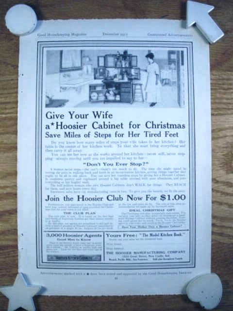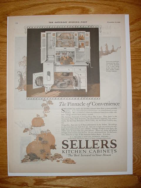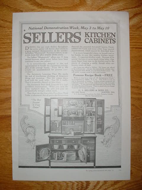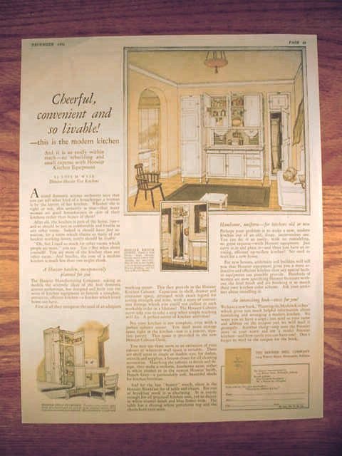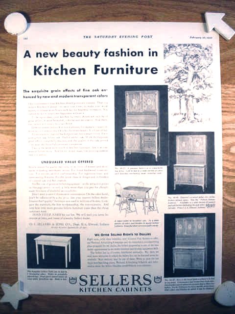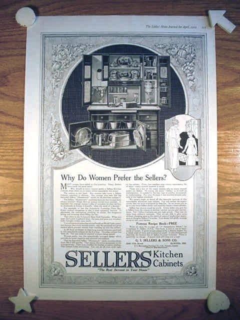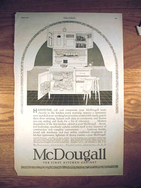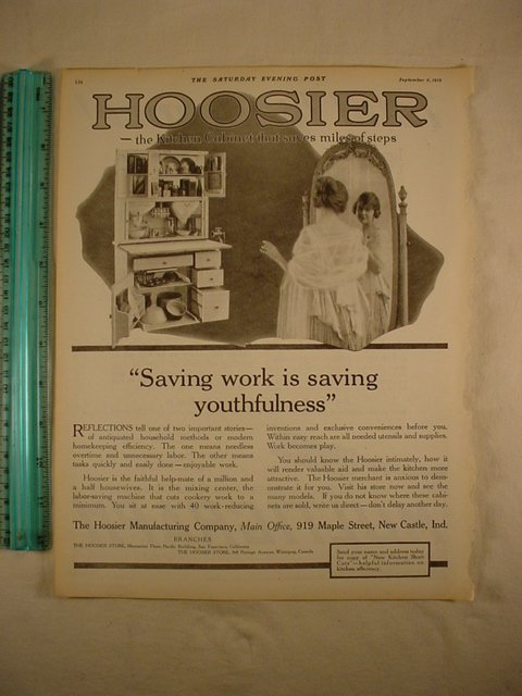 Original Advertisements for "Hoosier" Cabinets This page contains original advertisements removed from period magazines for many different makes and models of "Hoosier" style cabinets. We sell only original advertisements (no copies or reproductions) that are ready to be trimmed, matted and framed. Original ad's are usually the best way of determining what style of glassware and other accessories your cabinet was equipped with when it was new. Shipping cost will be $3.00 via First Class Mail for any number of ads. |